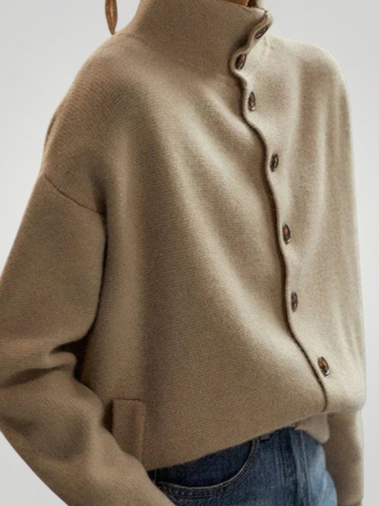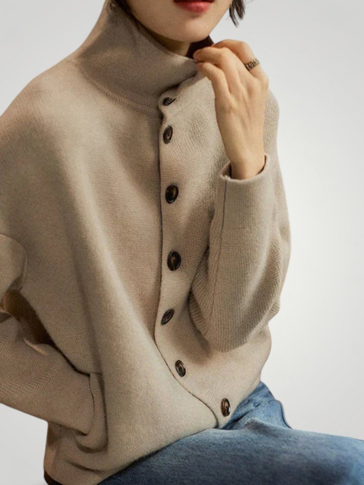 Découvrez le pull à col roulé qui allie confort et style avec une touche moderne. Ce vêtement est parfait pour les femmes qui souhaitent rehausser leur garde-robe tout en restant au chaud. Avec ses manches longues et ses détails de bouton raffinés, ce pull redéfinit le col roulé classique, le rendant idéal pour toutes les occasions, que ce soit en solo ou sous une veste.