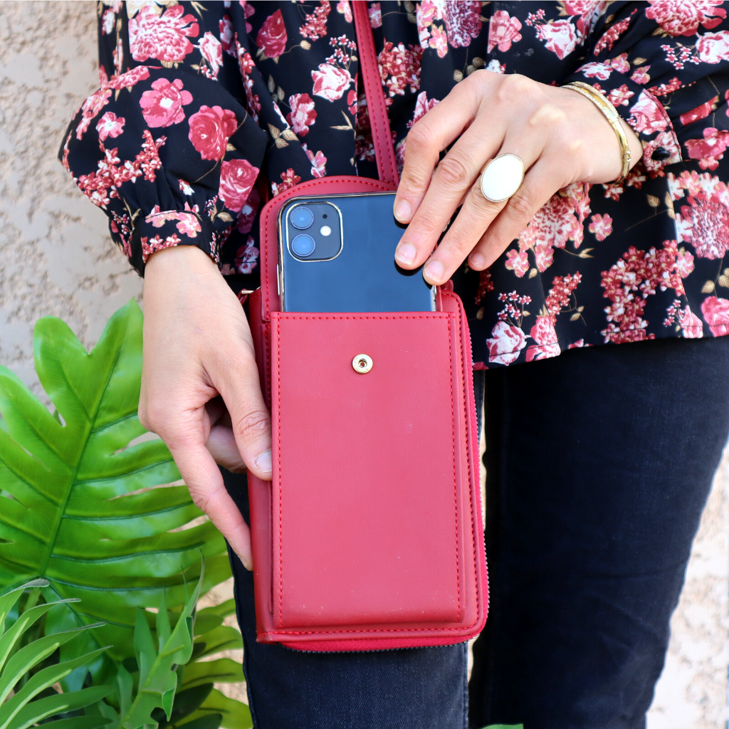 L'élégant portefeuille pochette CLARA™ est léger et élégant, conçu pour une vie en mouvement. Vous pouvez le porter à votre poignet ou utiliser la bandoulière incluse pour le transformer en un sac à main à bandoulière.